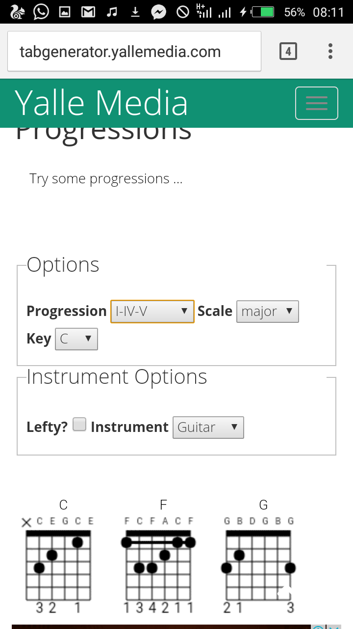 For example : Assuming you know that the progression of a song is C, Am, F, and G. And also assuming you do not know how to play on Key C, with the help of the online Tab Generator you’ll be able to know those chord shapes by selecting the progression you want to play.